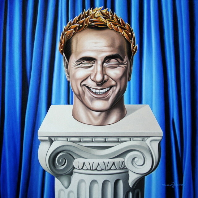 Мне случается писать более одного портрета одной и той же личности. И я скажу вам даже больше, я продолжу эту серию работ до тех пор, пока этот человек будет продолжать удивлять и вызывать во мне все более новые эмоции. В пример я мог бы привести портреты Владимира Путина, Барака Обамы, Сильвио Берлускони. |