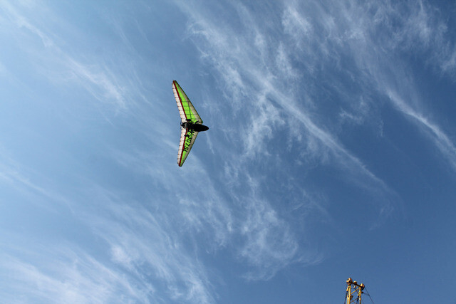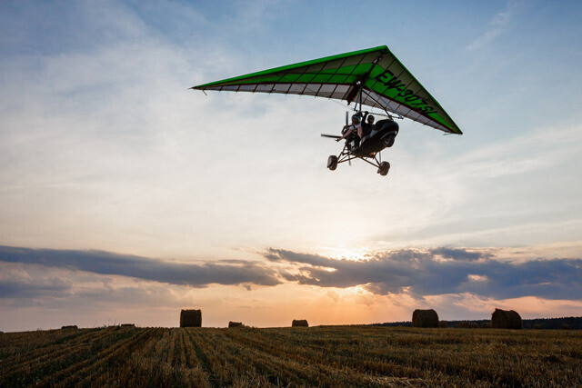 Вскоре в небе появилось другое изобретение да Винчи — дельтаплан. Аппарат пролетел над головами зрителей и сделал несколько кругов над крышами первых домов в Новой Боровой. На идею его создания итальянца вдохновили птицы. Один из разработанных им дельтапланов приводился в движение с помощью подвижных крыльев, которые поднимались и опускались за счет вращения человеком педалей. Сам летчик располагался горизонтально (лежа).