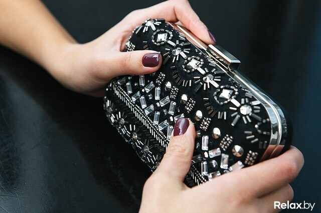 — Образ в длинном платье также подчеркивает осиную талию и отличную фигуру Татьяны. Богатая фактура актуального в этом сезоне бархата придает образу весомости и глубины, а перфорация ткани добавляет выразительности. Туфли тоже предложены из бархата на устойчивом каблуке и с серебристым декором. В таком оттенке выбраны и прочие аксессуары: это подчеркивает праздничность комплектов. Кстати, большую роль в создании образов играют наручные часы.