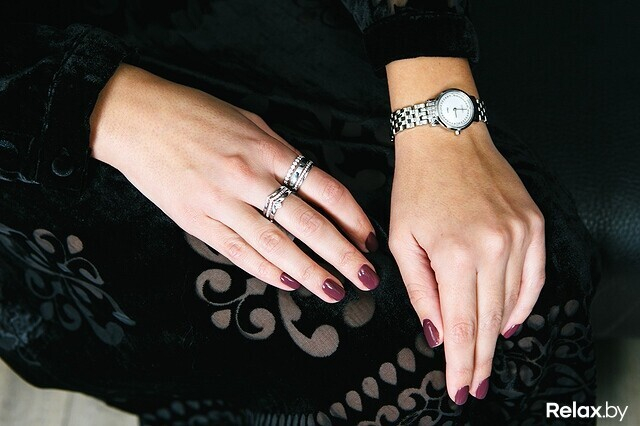 Здесь мастер по маникюру Карина Малиновская поколдовала над руками героев: Александр получил классический обрезной маникюр, Татьяна — обрезной с долговременным покрытием чудесного сливового цвета.