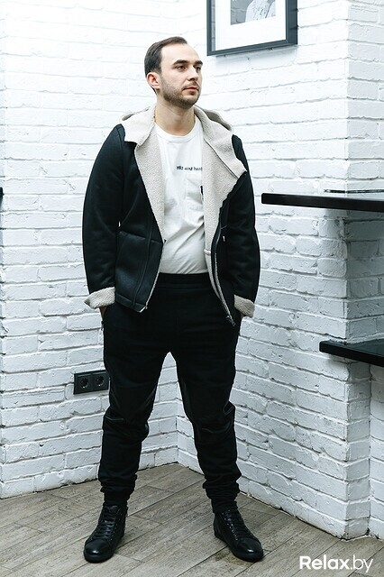 — Возвращение дубленки 1990-х и начала 2000-х — яркий тренд сегодня, — делится Юлия Кузьменкова. — Мы выбрали подходящие варианты этого модного предмета одежды для наших героев: контрастные (молочно/серо-чёрные) варианты дубленок подходят контрастным колоритам внешности ребят. Модель дубленки с капюшоном у Саши добавляет в его образ ощущения свободы, молодости, какой-то юношеской бесшабашности. Такой характер усиливает и модель выбранных брюк (актуальные трико) с отделками из кожзаменителя и резинкой на щиколотке, а также кеды и футболка с необработанным краем горловины. Особого внимания заслуживает эффектный тандем наручных часов и кожаного браслета — современно и стильно!
