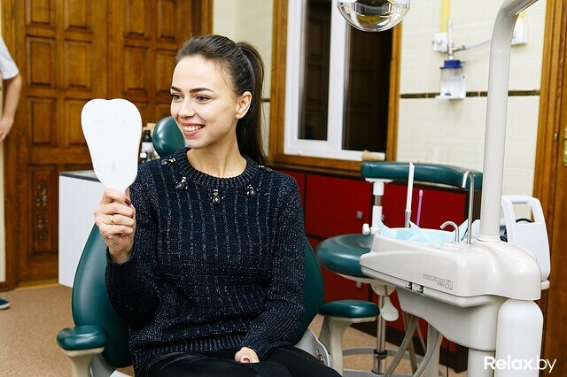 Следующим этапом преображения стало посещение стоматологического центра «Медэксперт-плюс», где стоматолог Денис Пшиков сделал героям профессиональную гигиену полости рта при помощи системы Air-flow, а после — отбеливание Opalescence Xtra Boost. Чувствительность зубов после такой процедуры ниже, чем после отбеливания лампой, а само оно позволяет сделать зубы светлее на тон или даже несколько всего за 15-20 минут.