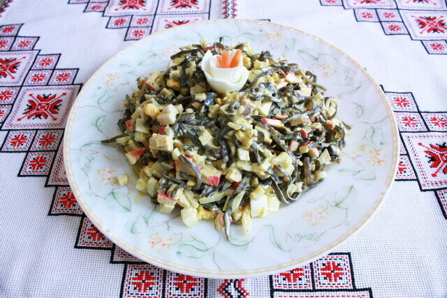 САЛАТ С КРАБОВЫМИ ПАЛОЧКАМИ И МОРСКОЙ КАПУСТОЙ