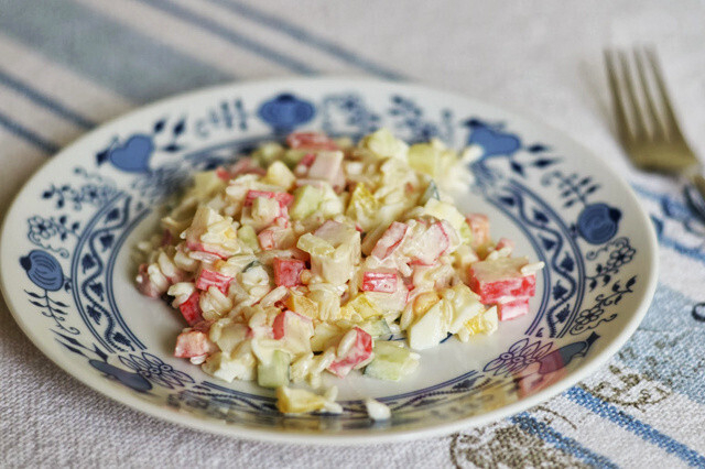 САЛАТ С КРАБОВЫМИ ПАЛОЧКАМИ И ПЕКИНСКОЙ КАПУСТОЙ