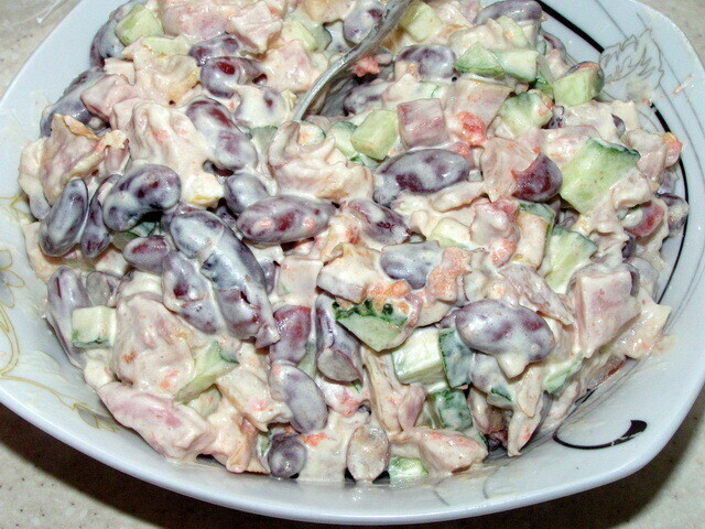 САЛАТ С КРАБОВЫМИ ПАЛОЧКАМИ И ФАСОЛЬЮ
