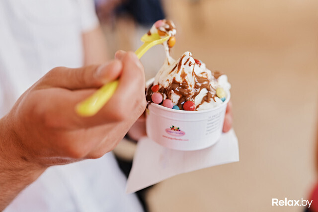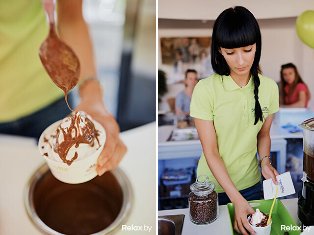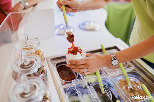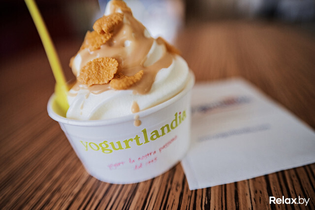 Впервые в Минск привезли йогуртное мороженое крупного бренда: Yogurtlandia можно найти в более чем ста городах мира. Первая точка продаж открылась возле фуд-корта в ТЦ Galileo. Как утверждает учредитель, готовят здесь из исключительно натуральных продуктов, а калорийность мороженого, если не дополнять его топингами, приближается к нулю. Первое впечатление Relax.by: вкусно и объективно недорого.