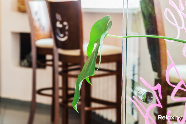 Здесь действительно царит позитивная атмосфера. Зала два, и оба они не слишком большие: их суммарная вместимость — всего 30 персон. Из интересного — два выхода, соответственно, воздух здесь циркулирует по кругу, так что его здесь действительно много. Кстати, есть и небольшая терраса.