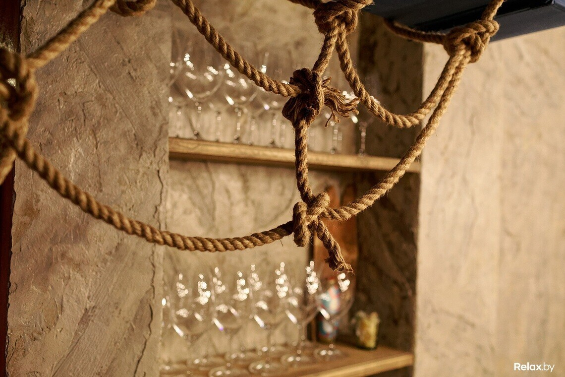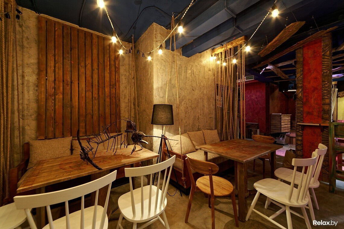 Есть еще «пещера в скале» с бечевкой, огромным металлическим скелетом рыбы и декоративными бетонными стенами. Одна из них, кстати, представляет собой береговую линию, к которой «прибило волной» морские звезды, послания в бутылках и обломки камней. Здесь предложат присесть на стулья и мягкие диваны.