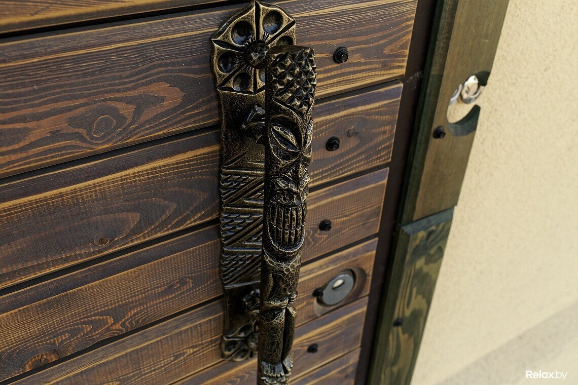 Первое, что вы видите, — тяжелая дверь, покрытая деревянными панелями и украшенная впечатляющей кованой тики-ручкой (мелочь, а приятно).
