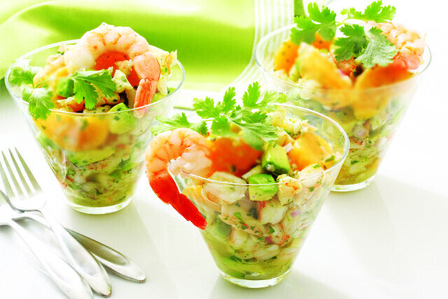 Салат с авокадо, моцареллой и креветками
