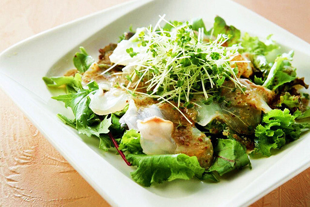Зеленый салат с креветками и хурмой
