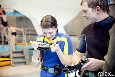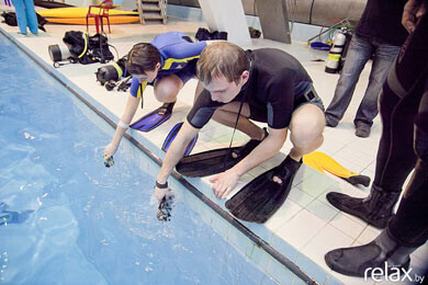 - Есть дайверы, которые очень хорошо плавают с аквалангом, но проплыть в бассейне серьезное расстояние без ласт для них составляет проблему, - говорит инструктор Валерий.