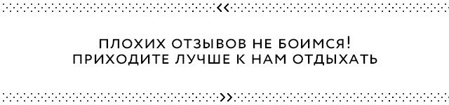 «Мы не боимся слухов и негативных отзывов, потому что уверены в себе. Кроме того, слухи — это всегда реклама и банальная зависть. Тех, кто будет писать о нас плохо, приглашаем в гости: спеть, вкусно поесть … и убедиться, что его отзыв не точен! Мы открывались не для того, чтобы отличаться от других заведений, а для того, чтобы быть лучше их». |