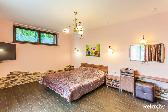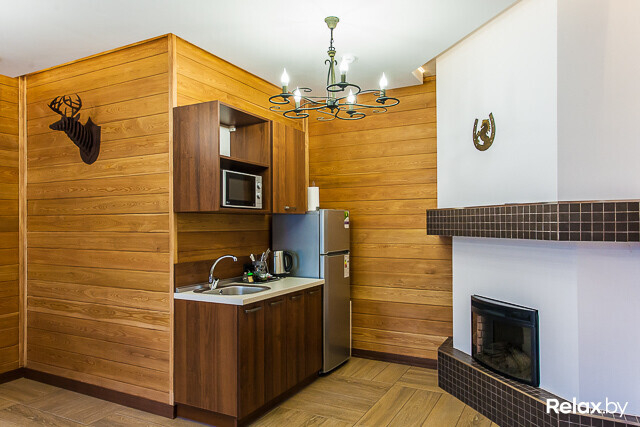 Кроме того, что во всех домиках организованы мини-кухни с холодильниками, посудой и бытовой техникой, а также террасы с зонами для мангала и барбекю, в ФОК «Вячоркi» можно заказать готовые блюда, которые привезут из кафе и пиццерии, расположенных неподалеку.