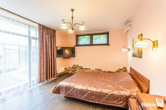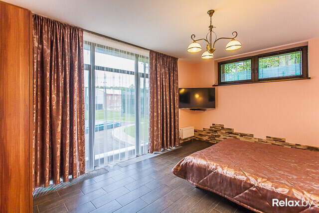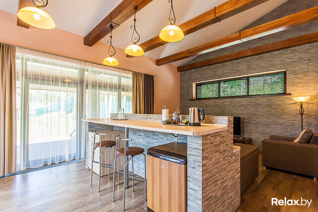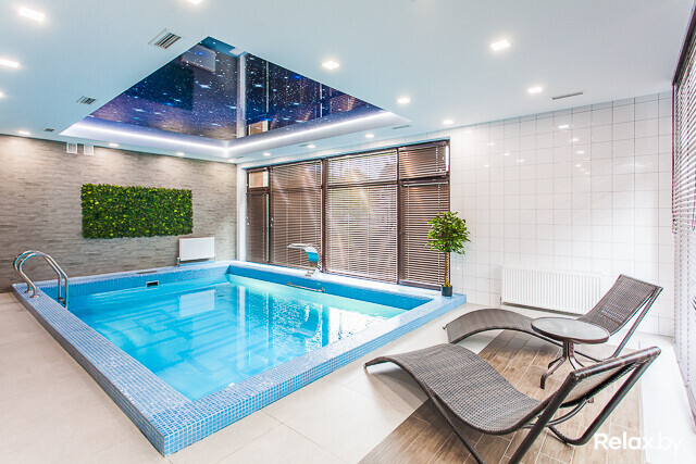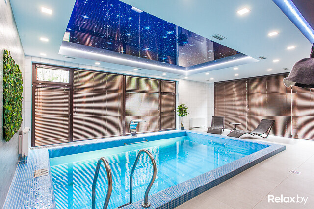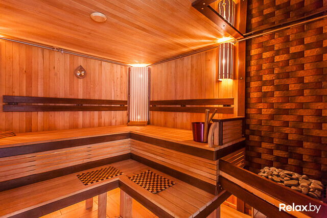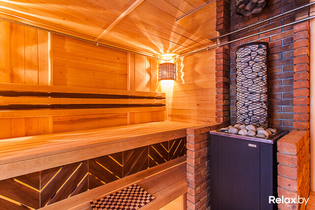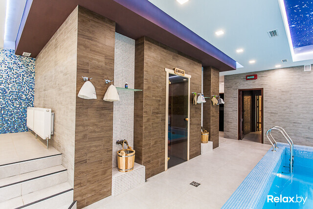 Спа-центр площадью 140 м2 представлен русской баней на дровах для 8-10 человек с джакузи и купелью с прохладной артезианской водой прямо на террасе и сауной для 6-8 человек. И в бане, и в сауне найдете бассейны с подводным массажем, противотечением, водопадом «Кобра», а также комнаты отдыха с аудио- и видеоаппаратурой, камином и небольшой кухней.