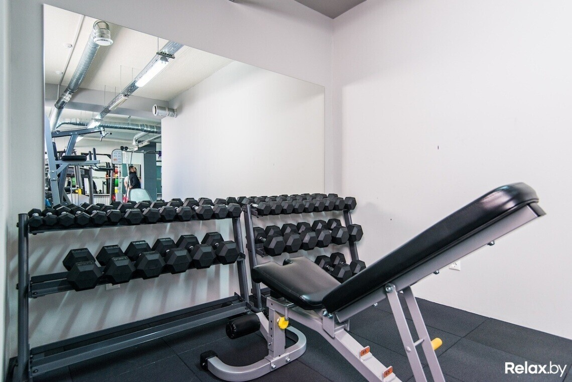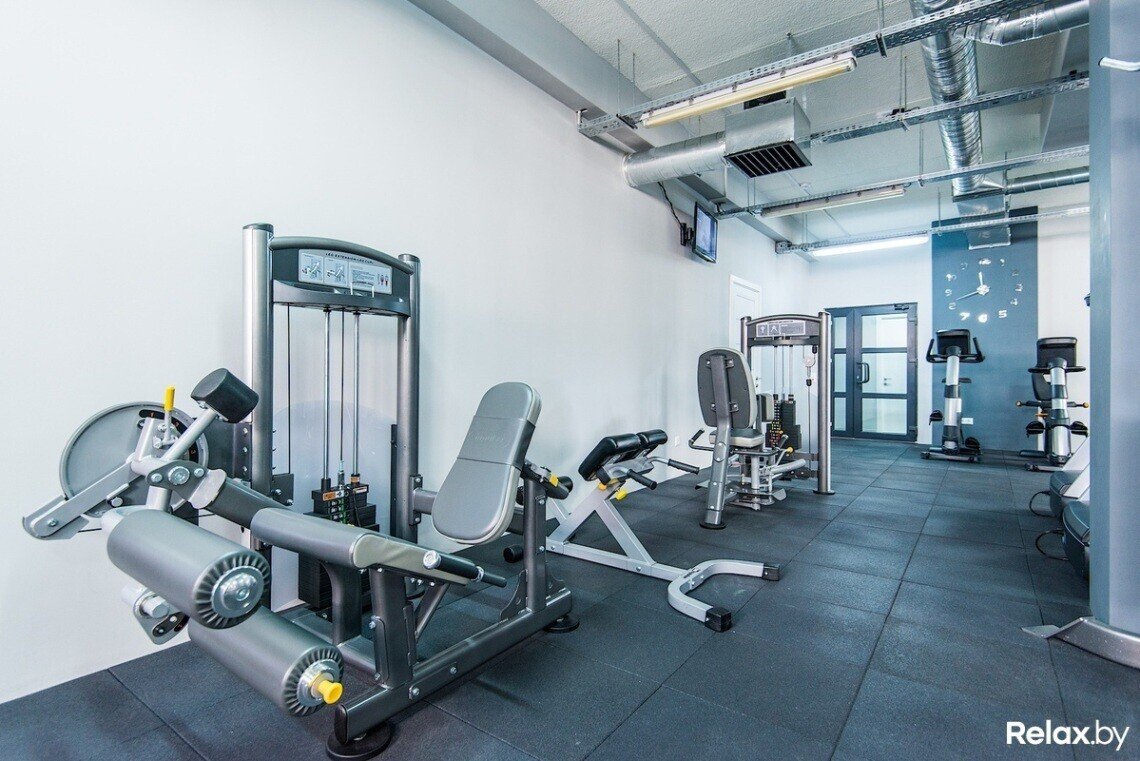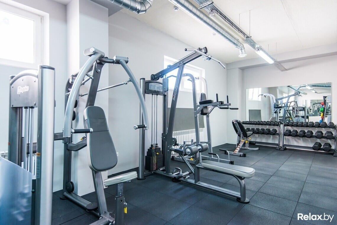 В тренажерном зале найдете отдельную кардиозону с беговыми дорожками, эллипсоидами и велотренажерами, а также оборудование для проработки всех групп мышц: силовая рама, машина Смита, кроссовер, тяга вертикального и горизонтального блоков, платформа для жима ногами, гиперэкстензия, широкий гантельный ряд и многое другое.