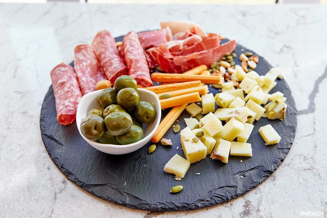 В меню кофейни-бара отметим карту с низкокалорийными десертами без сахара, масла и муки. Стоимость такого фитнес-тортика 6,50 рублей, а количество калорий не превышает 120. Можно купить трубочки, пончики, пирожки, грушевые и ягодные тарталетки, эклеры. Всего около 15 наименований продукции. К вину бариста рекомендует заказать фаршированный круассан. Для начинки используют овощи, итальянские и французские сыры, мясо. К вину нарезают сырные и мясные сеты по 20 и 25 рублей. Продукты для них подбирал шеф-повар Café de Paris.