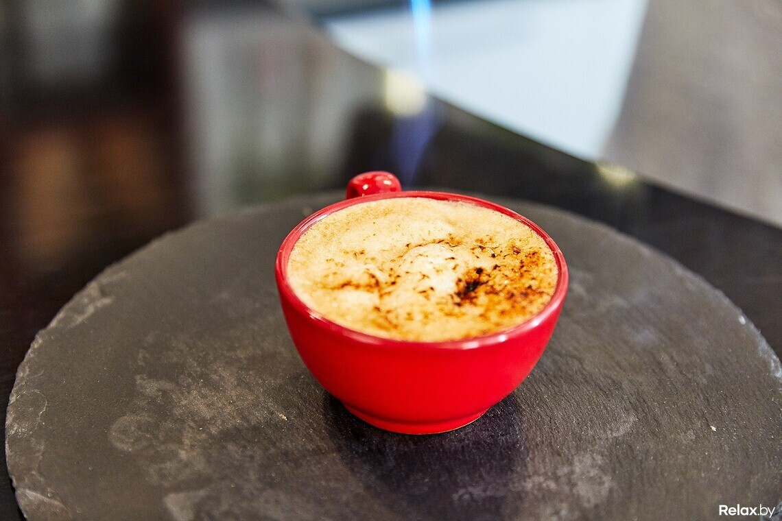 В кофейной карте классика и авторские варианты. Можно попробовать латте с пончиком, кубинский, халвичный, воздушный или пряный раф. Из оригинальных позиций — запеченный раф.