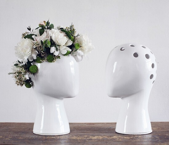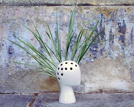 Многие гениальные идеи поражают своей простотой. Вот одна из них – ваза-голова. Внутри этой скульптуры находится колба с водой, в которые цветы ставятся через отверстия в голове. В итоге получается красивый и забавный парик, который украсит любой интерьер. Автор замечательной идеи - Tанья Да Круз (Tania da Cruz).