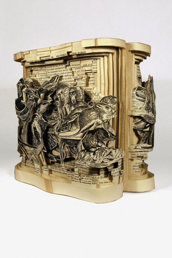 Согласитесь, книга – материал для творчества совершенно не стандартный. То есть представить, что с ней можно что-то делать, кроме как читать, очень сложно. Однако именно книги использует для создания своих скульптур художник из Атланты Брайан Деттмер. Результат действительно впечатляющий. Надо же было до такого сначала додуматься! А потом еще и так искусно воплотить в жизнь.