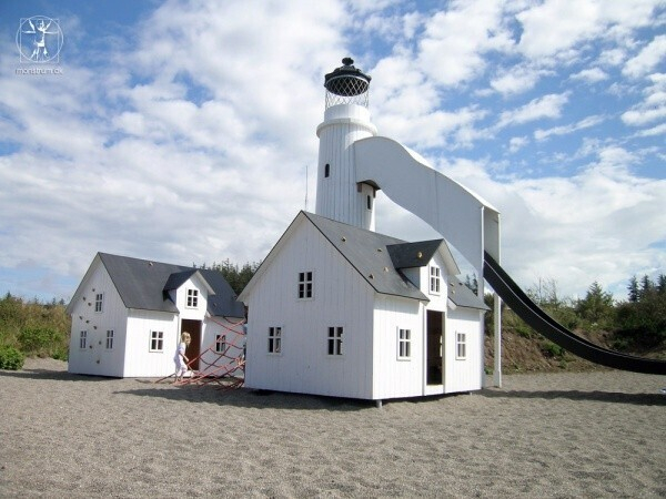 Кому не знакомо это чувство восторга в детстве при виде отличной игровой площадки будь то замок или просто дерево, на котором можно соорудить шалаш? Датская компания Monstrum занимается только проектированием детских площадок и больше ничем! Их цель — создавать не просто песочницу с горкой, а целый мир, в котором так легко мечтать, фантазировать и придумывать себе игры. Ведь гораздо интереснее побывать внутри большого кита, забраться на маяк и поползать на пауке.