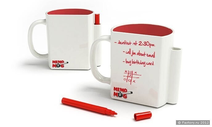 Memo Mug — магическая кружка, которая поможет вам помнить обо всем! Или просто оставлять милые послания любимым. Она имеет полукруглую форму и целую сторону-плоскость для письма. Вы можете написать список дел, признаться в любви или поиграть вдвоем в крестики-нолики — надписи специальным маркером легко смываются под водой. В любом случае — это отличный подарок и оригинальная вещь.