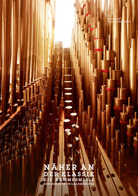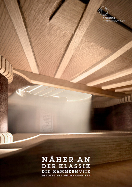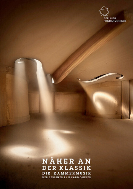 Музыка прекрасна, и то место, где она зарождается, не может быть менее прекрасным. Это подтверждают фотографии, созданные в качестве рекламных плакатов для Филармонического Оркестра Берлина. На них изображены музыкальные инструменты (скрипка, флейта и др.), снятые изнутри и передающие ощущение большого объема, красоты в игре света и гармонии.