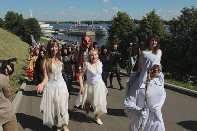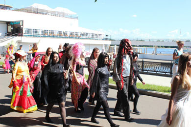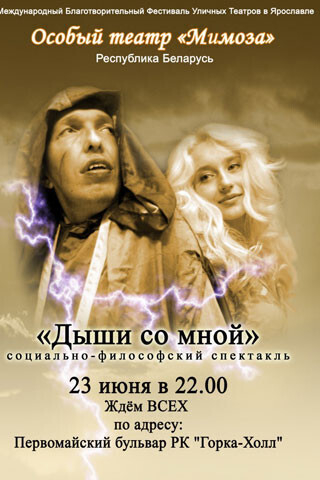 На основной фестивальной площадке «Горка-Холл» состоялся показ спектакля «Дыши со мной» – визитной карточки театра. Кроме того, артисты «Мимозы» участвовали в карнавальном костюмированном шествии по набережной Волги, попробовали себя в роли настоящих уличных артистов, промышляющих «шапочным» заработком, в историческом центре города. Маски для карнавального шествия создал художник Виктор Танюкевич, основатель театра «Мимоза».