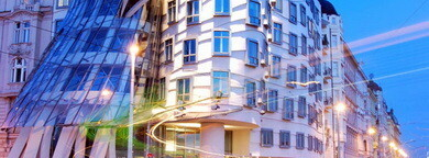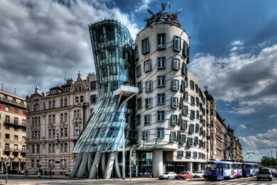 Гуляя по Праге обязательно обратите внимание на одно совсем необычное строение — Танцующий дом. Долгое время на его месте был пустырь, строительство началось в 1994 году. Над проектом работали разу два архитектора: Владо Милунич (Vlado Milunic) и Фрэнк Гери (Frank Gehry). Сегодня это крупный бизнес-центр, а на его крыше расположен La Perle de Prague — роскошный ресторан, с балкона которого открывается восхитительный вид на Прагу.