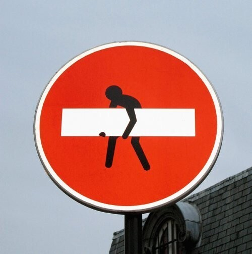 Кто-то рисует на холсте, кто-то на стенах, а вот французский уличный художник Клет Абрахэм выбрал для себя… дорожные знаки. Клет работает с пластиком и превращает самые простые дорожные знаки в произведение искусства с примесью политического, религиозного и философского понимания.
