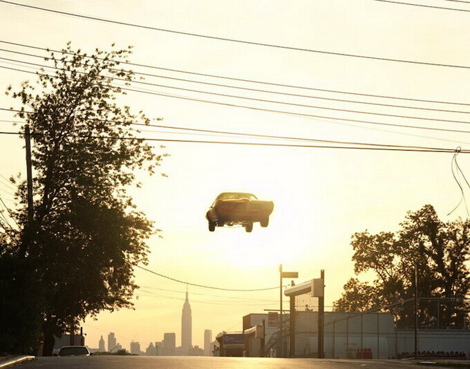Работы Мэтью Портера похожи на преувеличенные версии сцен преследования. В его серии летающих автомобилей мы видим старые авто 60-х, летящие очень высоко над городскими улицами.