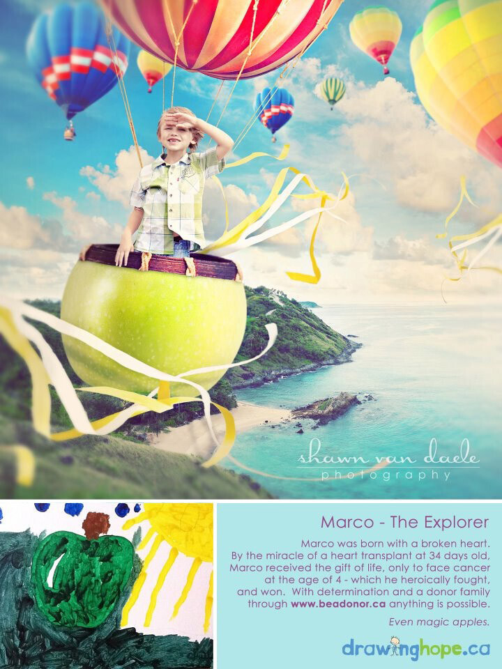 Канадский фотограф Шон ван Даел (Shawn Van Daele) осуществил волшебный проект "Рисунки надежды". Он превращает рисунки тяжело больных детей в реальность с помощью фотографий.