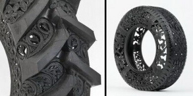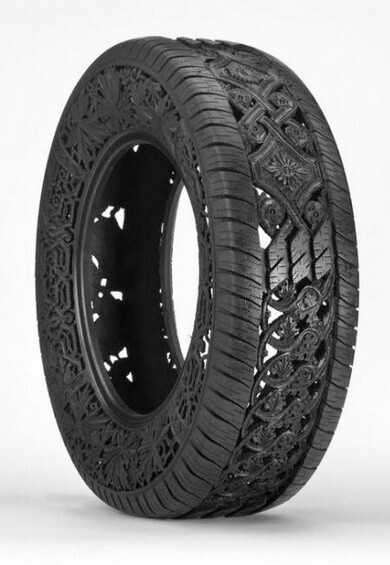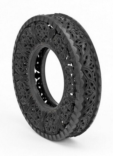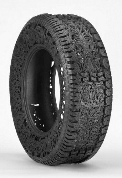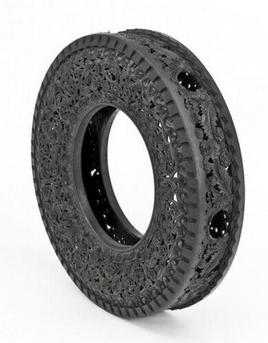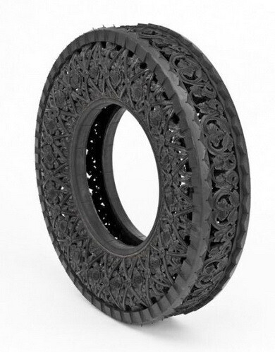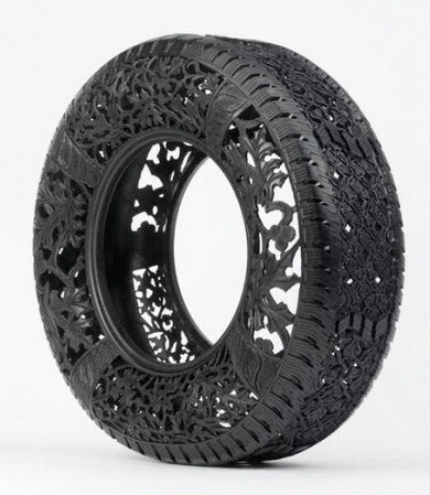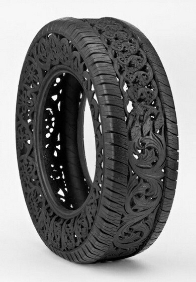 Все, что привычно, — скучно. Люди креативного склада ума находятся в постоянном поиске новых предметов, в которые еще можно вдохнуть творческое содержание. Для Вима Делвойе таким предметом стала самая обыкновенная шина. Он вырезает из грубой резины удивительной красоты узоры. Такой предмет искусства можно использовать и в качестве предмета интерьера.