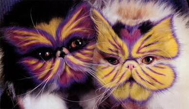Любовь к котам безгранична. Или иногда переходит все границы. Почему бы не сделать наших любимцев еще красивее? Например, покрасить их в необычной форме. На тему «что было бы, если…» рассуждают художница Хизер Буш и писатель Бертон Сильвер. А если бы мир окончательно сошел с ума по кошкам, то выглядел бы примерно так. Настораживающе, правда? Но не волнуйте в ходе съемок ни одно животное не пострадало. Все это — искусная работа в фотошопе.
