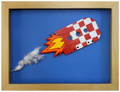 Раньше смыслом этих кассет был звук, теперь — изображение. Французский художник Бенуа Джеймс как-то нашел у себя коробку старых кассет, прослушать он их не мог, а как-то применить хотелось. Вот и родился проект «Кассетные превращения», призванный наделить каждый экспонат новой художественной и ностальгической интерпретацией. Как вам?