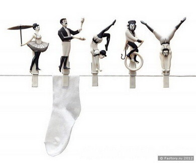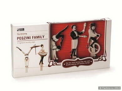 Когда самые привычные предметы обихода предстают в необычной форме — это цениться в двойне. Ведь именно такие простые, милые и наделенные идеей вещи могут сделать нашу жизнь интересней и разнообразней. Вот пример — бельевые прищепки-циркаци Pegzini Family и ваша обыкновенная веревка в качестве циркового каната. Развешивать белье в такой компании одно удовольствие. Автор — Inbal Hoffman.