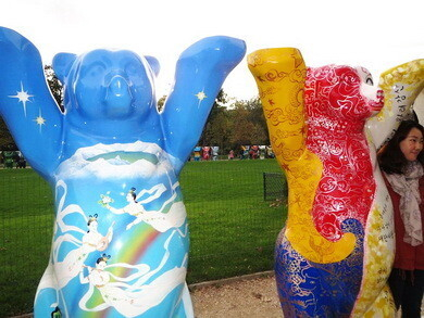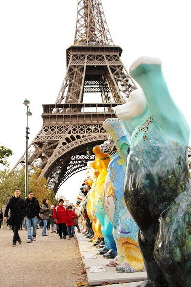 Париж заполонили медведи. Сразу 140 штук. Они стоят около Эйфелевой башни, взявшись за руки, и олицетворяют собой согласие между Францией и Германией. Эта выставка организована в честь 25-летия объединения Парижа и Берлина и 50-летия с момента подписания Елисейского договора. Каждый из медведей совершенно необычен и индивидуален. Простоят мишки на Марсовом поле до 18 ноября.