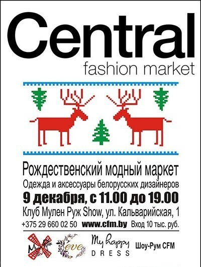 Для неравнодушных к белорусскому дизайну и желающих купить уникальные авторские подарки к Рождеству и Новому году открывается Central Fashion Market. Свои коллекции представят более 70-ти белорусских дизайнеров и мастеров, среди которых Ольга Кучеренко, Ирина Юрченко, Ольга Кардаш, дуэт Татьяны Ефремовой и Тамары Горидовец, бренды My Happy Dress, PaRus Jeans, Yana Kovich и другие. Отличная возможность побаловать себя милыми покупками, посетить два мастер-класса и просто провести время среди приятных людей.