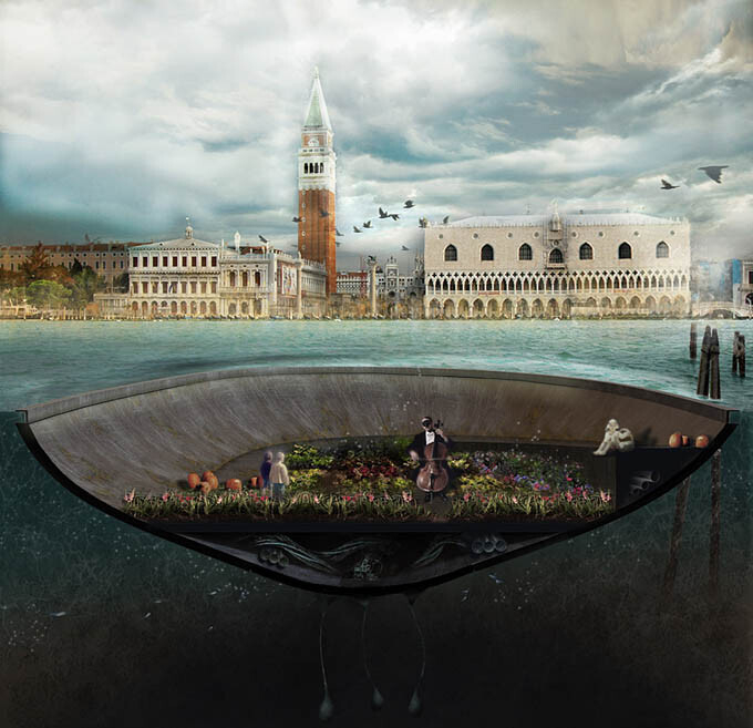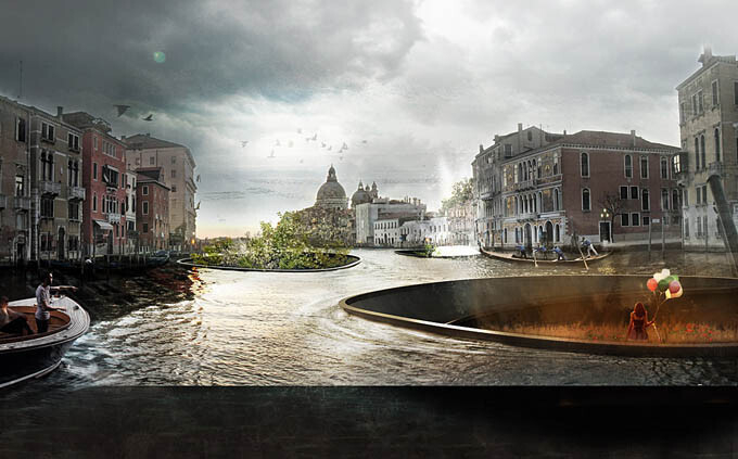 Этот дизайнерский проект довольно сложно сразу уложить у себя в голове. Зато его воплощение скорее всего можно будет увидеть в будущем воочию, так как именно он выиграл в конкурсе Venice cityvision competition 2011. Его авторы, архитектурная студия bam!, задались целью таким образом улучшить инфраструктуру города. Острова будут напоминать собой маленькие парки, а добраться до них можно будет на гондоле.