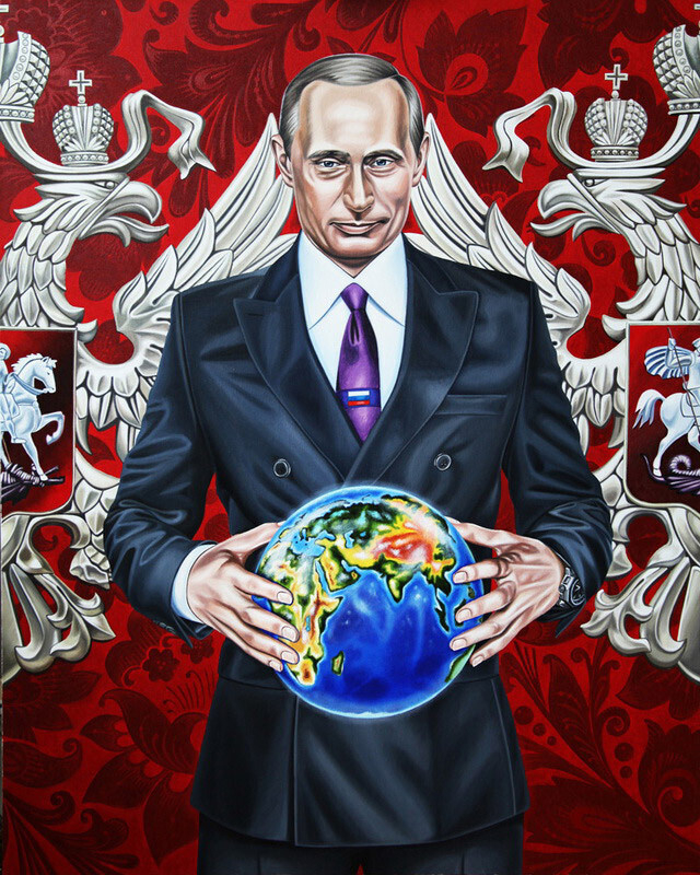 Мне случается писать более одного портрета одной и той же личности. И я скажу вам даже больше, я продолжу эту серию работ до тех пор, пока этот человек будет продолжать удивлять и вызывать во мне все более новые эмоции. В пример я мог бы привести портреты Владимира Путина, Барака Обамы, Сильвио Берлускони. |