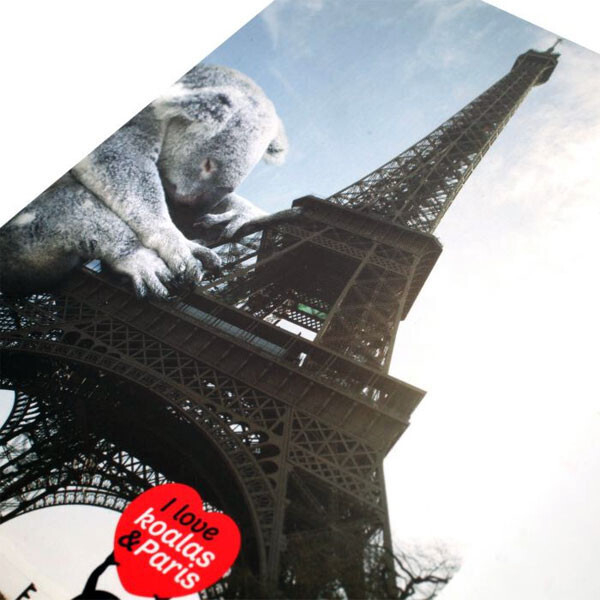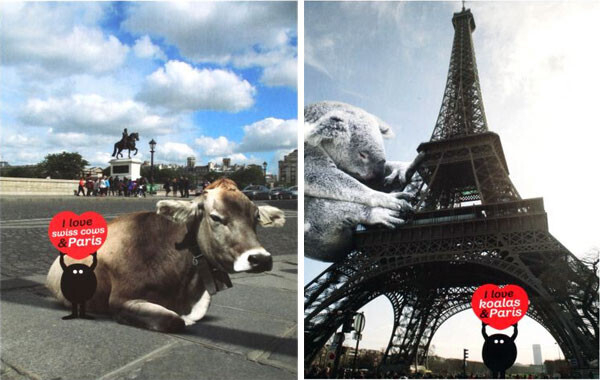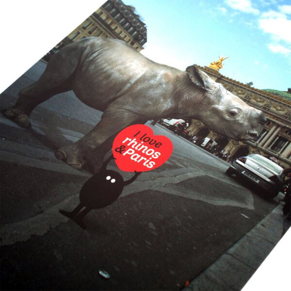 Открытки "Я люблю Париж" имеют совершенно уникальную концепцию. На них изображены самые узнаваемые виды города, написано признание и присутствуют некоторые жители. Но какие жители! Черепаха, улитка, курица, носорог… На фоне Триумфальной арки и Сакре Кера они выглядят причудливо, но тем самым лишний раз напоминают о нестандартном французском юморе. Авторы этих произведений иллюстратор Женевьев Гоклер (Geneviéve Gauckler) и парижский бутик Colette.