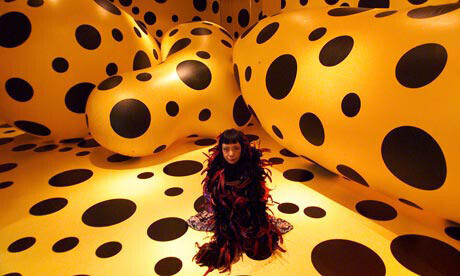 Яёи Кусама во всех своих работах – скульптурах, картинах, арт-объектах – применяет горошек. Она считает свои произведения «бесконечными», так как в них бесконечное множество кружков. Родилась Яёи в 1929 году, а в 1959 переехала в Нью-Йорк. Ее авангардное искусство было весьма популярным и даже оказало влияние на короля поп-арта Энди Уорхола. По возвращении на родину художница попала в психиатрическую больницу, но продолжает творить до сих пор. Несколько лет назад одна из ее работ была продана за 5 миллионов 100 тысяч долларов, а это рекорд для живущей женщины-художника. Один вывод: талант нигде не спрячешь, даже в психиатрической больнице.