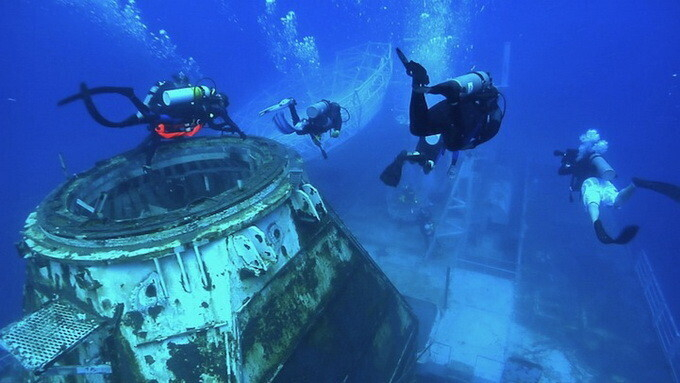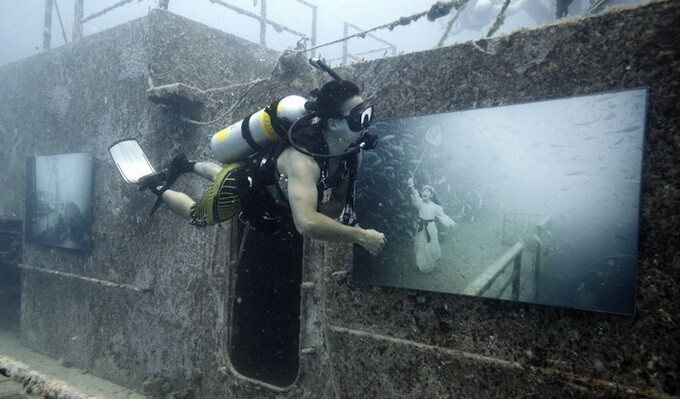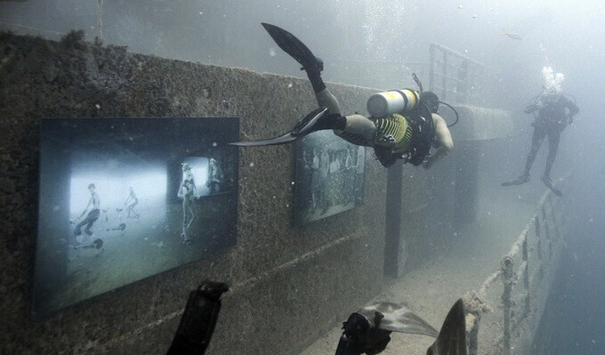 Ради искусства можно спуститься и под воду. Первая в мире выставка, находящаяся ниже уровня моря, на затонувшем во Флориде судне Vandenberg организована Андреасом Франком (Andreas Franke). Он профессиональный фотограф и водолаз. В прошлом году он исследовал место кораблекрушения и сделал несколько снимков, а затем к нему в голову пришла необычная идея: почему бы не сделать из корабля художественную галерею, так он снова сможет служить людям. И уже в это году работы Франка разместились на внешней стороне правого борта, прикрепленные к нему магнитами и защищенные стеклом и нержавеющей сталью.