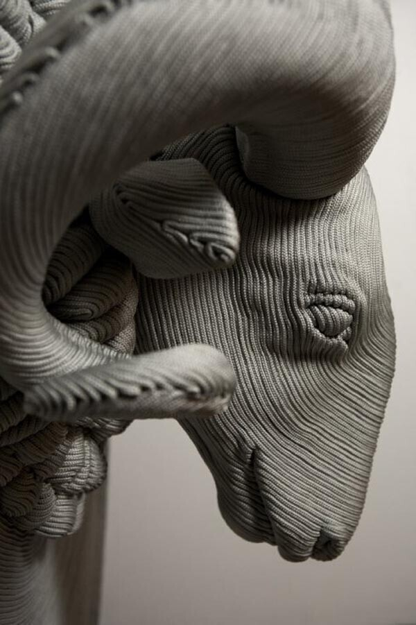 Использую лишь нейлоновую веревку и пенополистирол Mozart Guerra удается создавать удивительные скульптуры людей и животных. Формы настолько идеальны, что в голове не укладывается, что это сделано руками и из такого непривычного материала. Живет Mozart в Париже, а выставляется по всему миру.