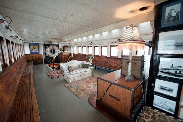 Удивительный дом на корабле принадлежит Виктории и Ричарду Маккензи. Они вместе отреставрировали и обустроили исторический паром 1907 года Yankee Ferry. Теперь внутри он выглядит как настоящий дом, очень уютный и жизнерадостный, а корабль снова на плаву. Также супружеская чета использует его как свою студию, в которой они работают в качестве декоративных художников.
