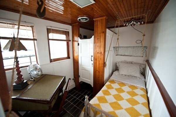 Удивительный дом на корабле принадлежит Виктории и Ричарду Маккензи. Они вместе отреставрировали и обустроили исторический паром 1907 года Yankee Ferry. Теперь внутри он выглядит как настоящий дом, очень уютный и жизнерадостный, а корабль снова на плаву. Также супружеская чета использует его как свою студию, в которой они работают в качестве декоративных художников.