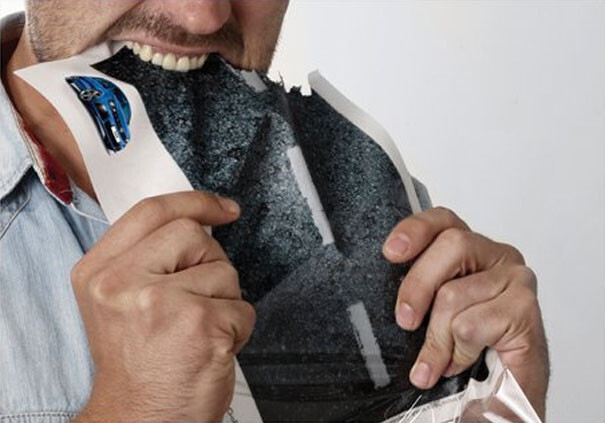 пропиленгликоля и глицерина. «Ешь дорогу, — призывает слоган, — Нет, серьезно, ешь ее!»