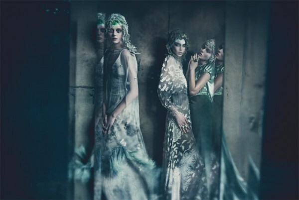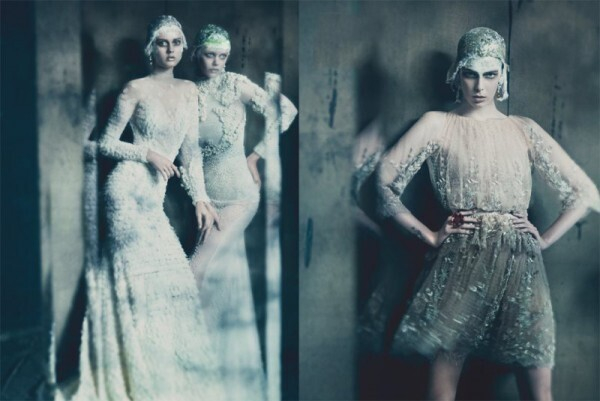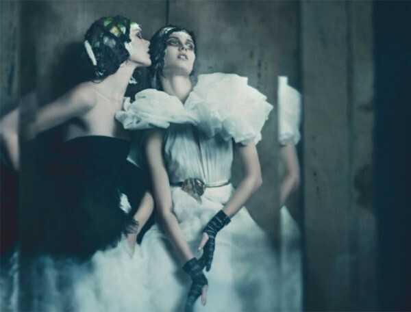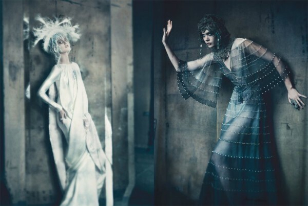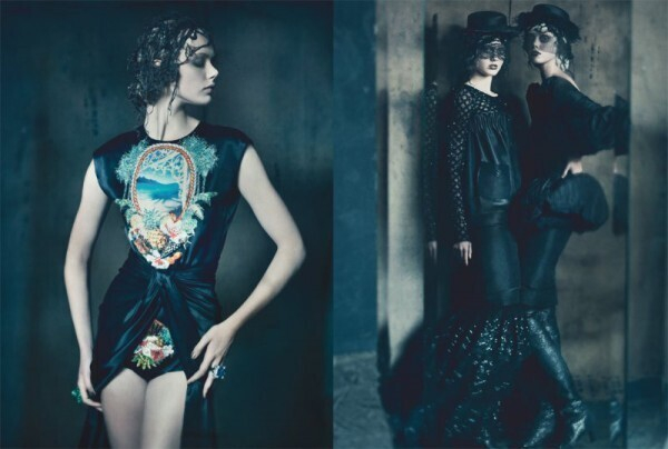 Поразительная готическая фотосессия появилась в последнем номере итальянского Vogue. Фотограф — Frida Gustavsson, наряды на моделях Jac Jagaciak и Kristina Salinovic от ведущих мировых брендов Valentino, Chanel, Jean Paul Gaultier и Atelier Versace. Пример того, какой завораживающей может быть таинственная красота.