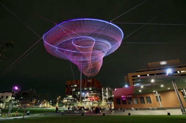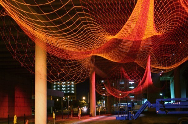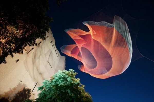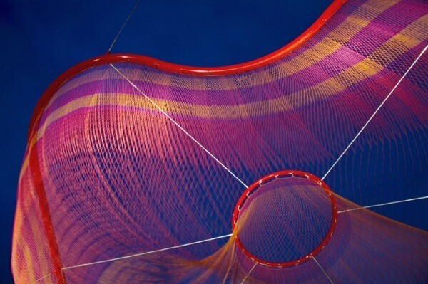 Красочные воздушные скульптуры в воздухе — это воплощение творческого замысла художницы Джанет Эхельман (Janet Echelman). Она использовала рыбацкие сети и яркие краски для того, чтобы сделать небо над головой веселым и радостным. Ее творения, развешанные при помощи специальных растяжек, уже появились в разных городах мира.