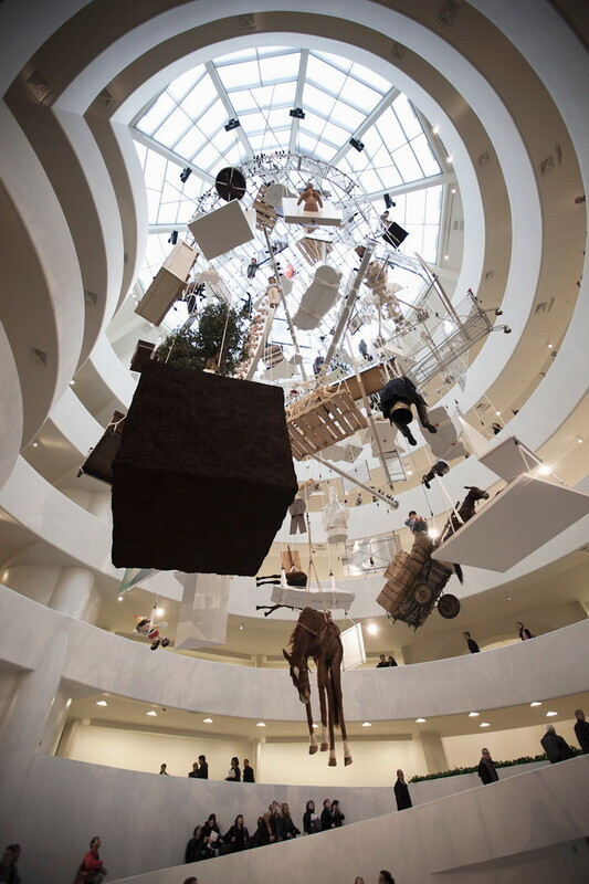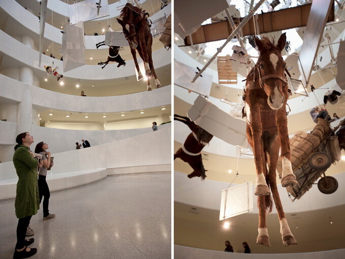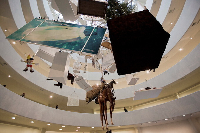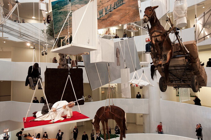 Один из самых провокационных художников современности Маурицио Каттелан (Maurizio Cattelan) отражает в своем творчестве массовую культуру, религия историю и делает это с глубоким смыслом, но некоторой долей иронии. В данный момент все его работы размещены в ретроспективной выставке в Музее Гуггенхайма в Нью-Йорке.